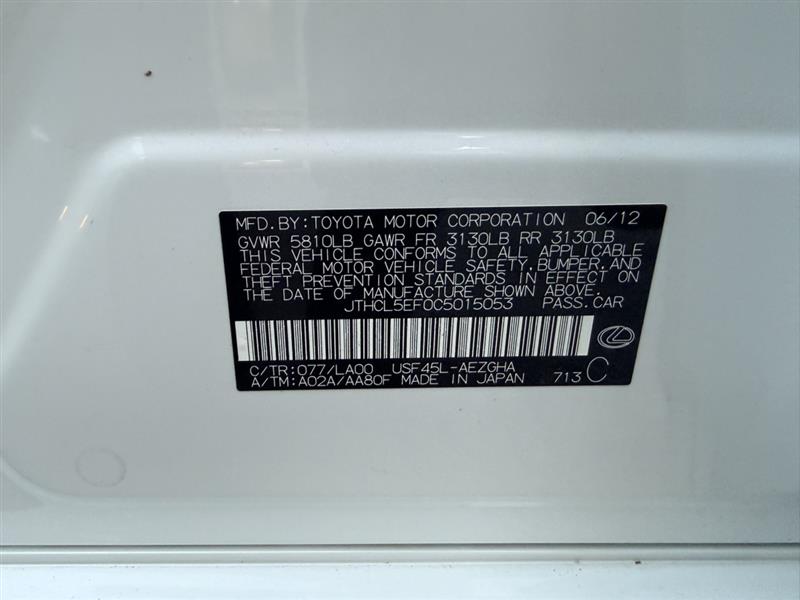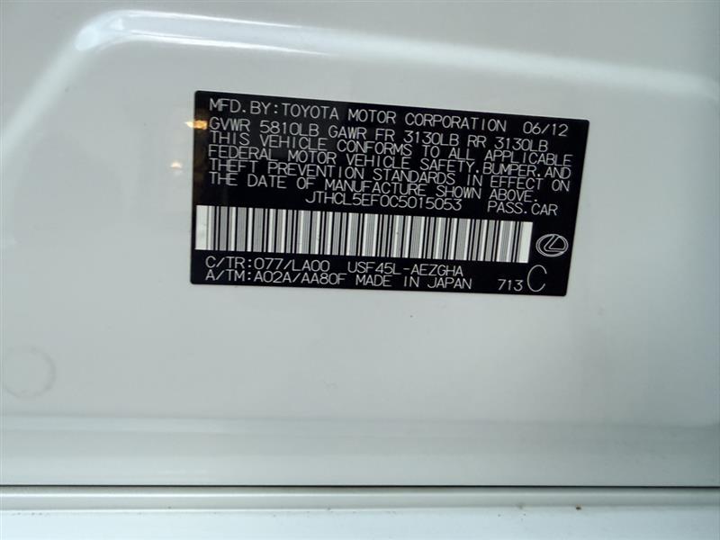 VIN #: JTHCL5EF0C5015053 | Stock #: A6262